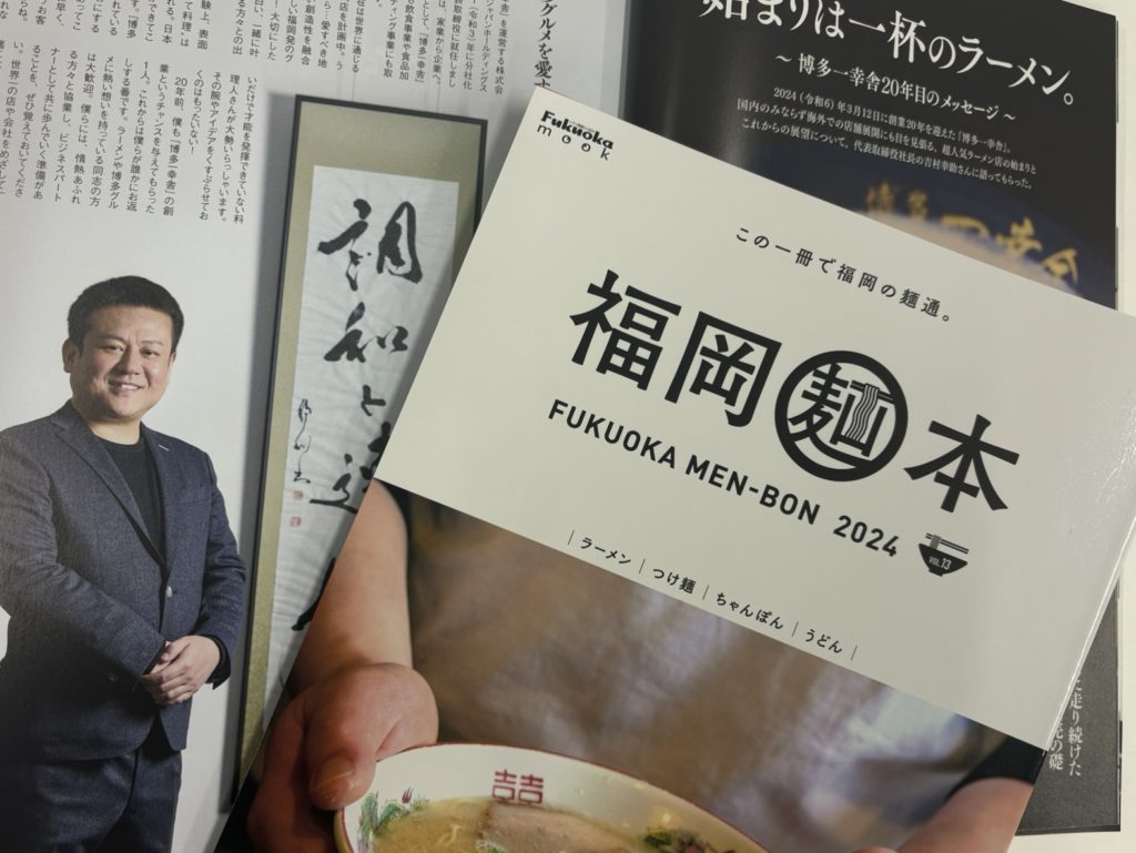 豚骨ラーメンをはじめ、厳選した白湯系、家系二郎系などの福岡の様々な麺が紹介されています。博多一幸舎はもちろんプロデュース店の紹介、また博多一幸舎の創業者 吉村幸助が語る創業20年目のメッセージなど、情報盛りだくさんです。
